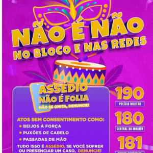 NÃO É NÃO - NO BLOCO E NAS REDES: MUNICÍPIO ADERE À CAMPANHA ESTADUAL DE COMBATE À IMPORTUNAÇÃO SEXUAL DURANTE O CARNAVAL