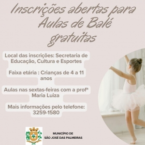 INSCRIÇÕES ABERTAS PARA AULAS DE BALÉ GRATUITAS