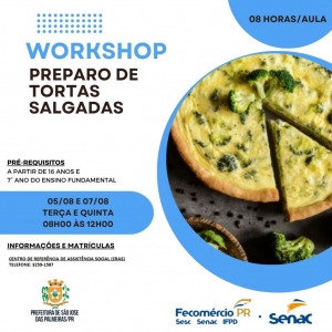 ASSISTÊNCIA SOCIAL OFERECE WORKSHOP SOBRE PREPARO DE TORTAS SALGADAS: INSCRIÇÕES SERÃO REALIZADAS NA SEGUNDA-FEIRA (04 DE AGOSTO)