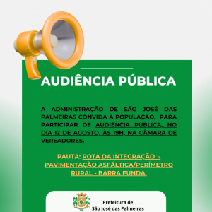 AUDIÊNCIA PÚBLICA: PAUTA - ROTA DA INTEGRAÇÃO/ PAVIMENTAÇÃO ASFÁLTICA/PERÍMETRO RURAL - BARRA FUNDA (SERÁ REALIZADA NO DIA 12 DE AGOSTO)