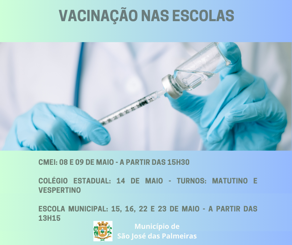 A Secretaria de Saúde de São José das Palmeiras, através da equipe de imunização, dará início nesta quinta-feira (08), à Campanha de Verificação de Situação Vacinal de crianças e adolescentes, nas escolas do município.