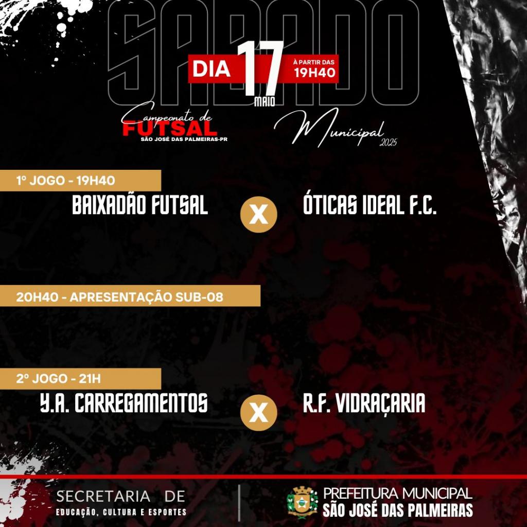 CAMPEONATO MUNICIPAL DE FUTSAL: 9ª RODADA – SÁBADO (17 DE MAIO)