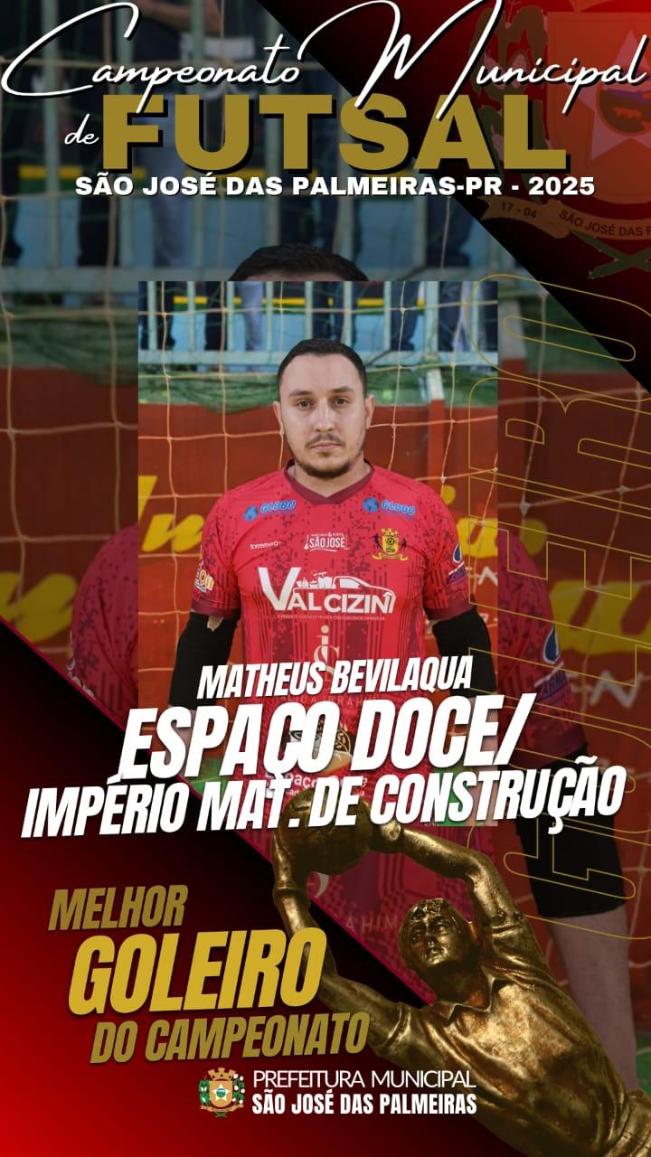 MELHOR GOLEIRO DO CAMPEONATO: Matheus Beviláqua.