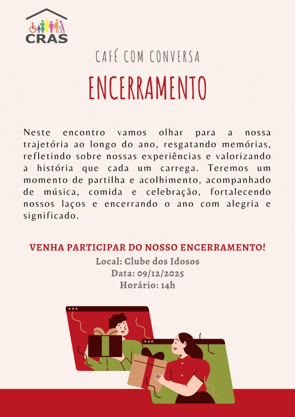 CONVITE / CAFÉ COM CONVERSA: ATENÇÃO SÃOJOSÉLIENSES QUE INTEGRAM OS GRUPOS DO SCFV ACOMPANHADOS PELA EQUIPE TÉCNICA DO CRAS